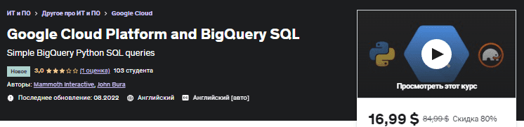 [Udemy] Облачная платформа Google и BigQuery SQL (2022)
