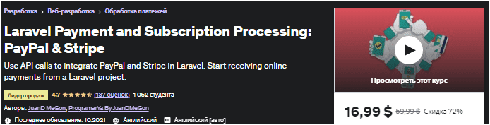 [Udemy] Обработка платежей и подписок в Laravel: PayPal и Stripe (2021)