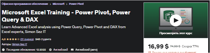 [Udemy] Обучение работе с Microsoft Excel — Power Pivot, Power Query и DAX (2022)