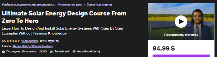 Пройдите этот курс, если вы искали ОДИН КУРС с углубленным изучением солнечной энергии.