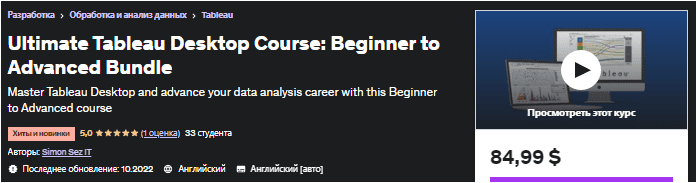 Это обучающий видеокурс, подходящий для пользователей Windows или Mac и включающий в себя Tableau Desktop.
