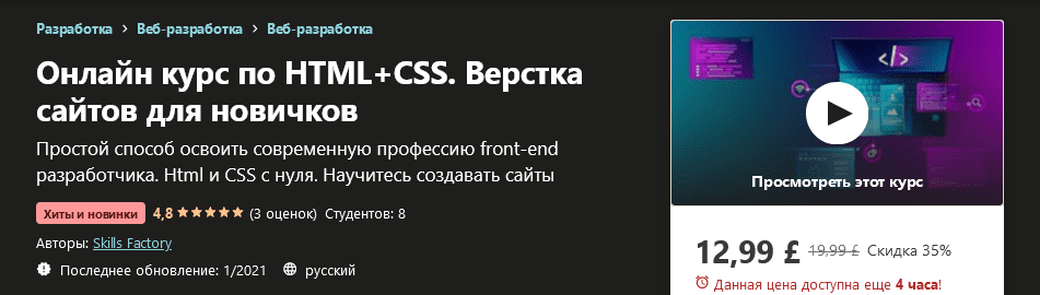 [Udemy] Онлайн курс по HTML+CSS. Верстка сайтов для новичков (2021)