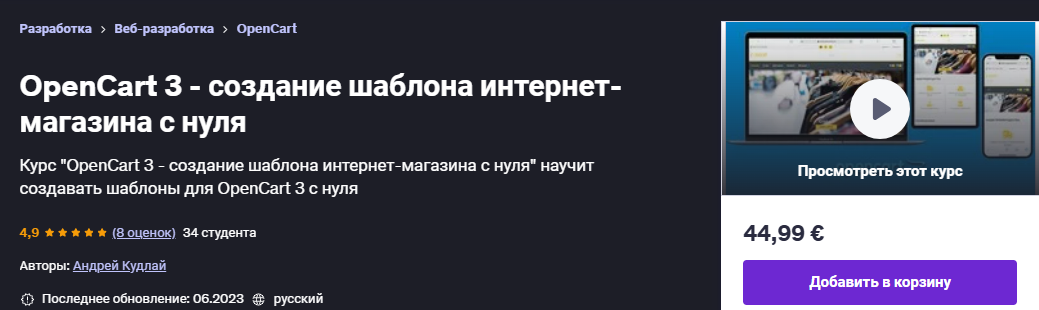 Название: OpenCart 3 - создание шаблона интернет-магазина с нуля (2023)