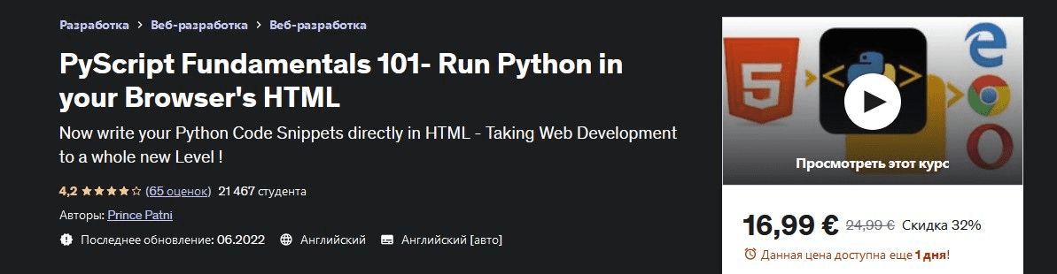 [Udemy] Основы PyScript 101. Запуск Python в HTML-коде вашего браузера (2023)