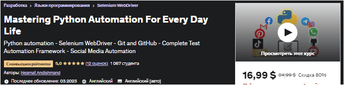 Вы изучите все основные и необходимые концепции для автоматизации повседневных задач в социальных сетях. Кроме того, подробные проекты, включенные в этот курс, обеспечат полезный опыт обучения. Этот курс был специально разработан для начинающих, которые ничего не знают о Python и задачах автоматизации.
