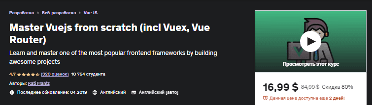 Запишитесь на этот курс и сразу приступайте к обучению. Завтра к этому времени вы сможете пройти этот курс и добавить vue-js в свой набор навыков.