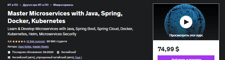 Курс "Овладейте микросервисами с Spring, Docker, Kubernetes" поможет понять архитектуру микросервисов и как ее создавать с использованием SpringBoot, компонентов Spring Cloud, Docker и Kubernetes.