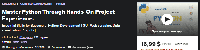 [Udemy] Освойте Python благодаря практическому опыту работы над проектами (2023)