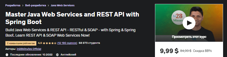 5 ЗВЕЗД . Для опытного разработчика JEE, не знакомого со Spring Boot и разработкой веб-сервисов в нем, это был просто потрясающий курс для получения знаний и навыков применения в реальном контексте.