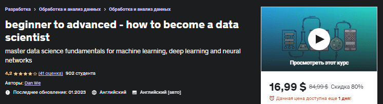 Моя цель - показать вам простой, интересный и эффективный способ начать изучение данных с нуля. Даже если вы едва начали заниматься программированием и знаете только основы python, этот курс поможет вам овладеть всеми необходимыми навыками в области науки о данных!