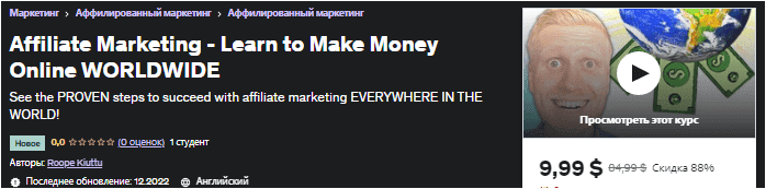 [Udemy] Партнерский маркетинг – учитесь зарабатывать деньги в Интернете ПО ВСЕМУ МИРУ (2022)