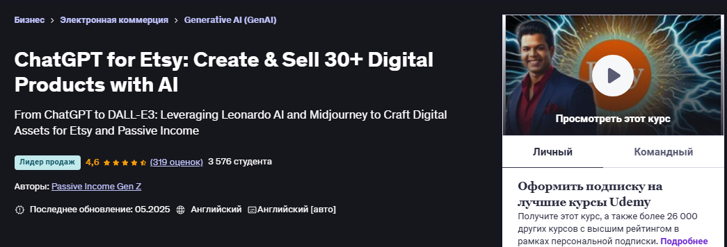 Слив курса ChatGPT для Etsy: создание и продажа более 30 цифровых продуктов с помощью ИИ [udemy] [Passive Income Gen Z]