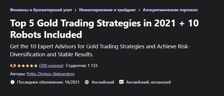 [Udemy] Petko Zhivkov Aleksandrov - 5 лучших золотых стратегий торговли в 2021 году + 10 роботов (2021)