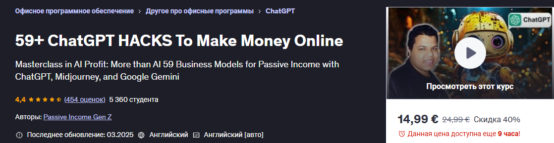 [Udemy] [Поколение пассивного дохода Z] [ENG] 59+ взломов ChatGPT для заработка денег в интернете (2025)
