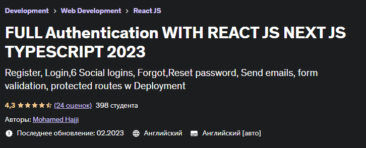 [Udemy] Полноценная аутентификация с помощью React JS, Next JS и TypeScript (2023)
