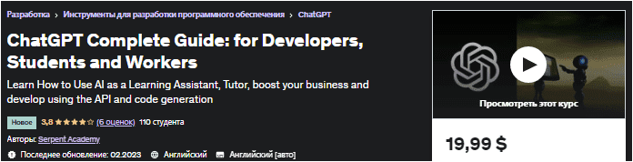 [Udemy] Полное руководство по ChatGPT: для разработчиков, студентов и сотрудников (2023)