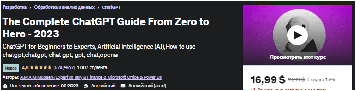[Udemy] Полное руководство по ChatGPT от нуля до героя (2023)