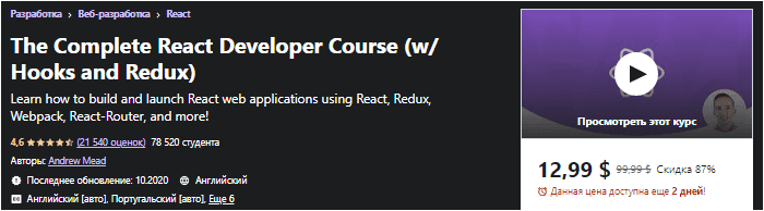[Udemy] Полный курс для разработчиков React (с хуками и Redux) (2020)