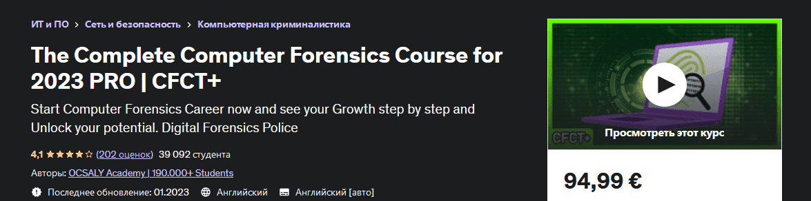 [Udemy] Полный курс компьютерной криминалистики для 2023 PRO, CFCT+ (2023)