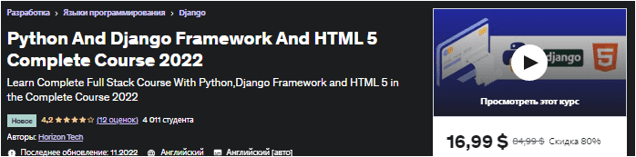 [Udemy] Полный курс Python, Django Framework и HTML 5 (2022)