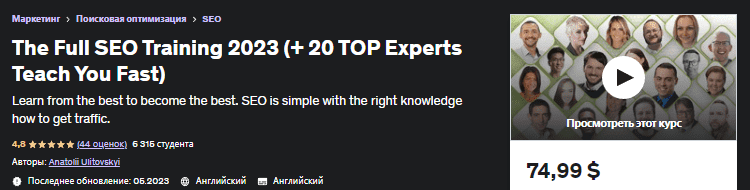 [Udemy] Полный курс SEO 2023 (+20 лучших экспертов быстро научат вас) (2023)