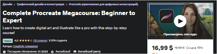 [Udemy] Полный мегакурс Procreate: от новичка до эксперта (2023)