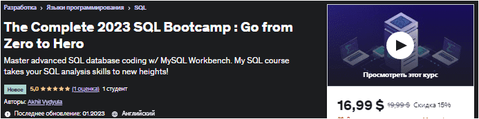 [Udemy] Полный учебный курс SQL 2023 года: от нуля до героя (2023)