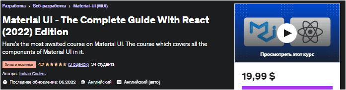 [Udemy] Пользовательский интерфейс материалов — полное руководство по выпуску React (2022)