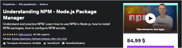 [Udemy] Понимание NPM - менеджер пакетов Node.js (2022)