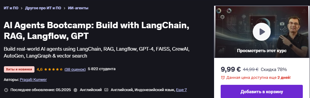 [Udemy] [Pragati Kunwer Учебный курс AI агенты: создание с помощью LangChain, RAG, Langflow, GPT (2025)