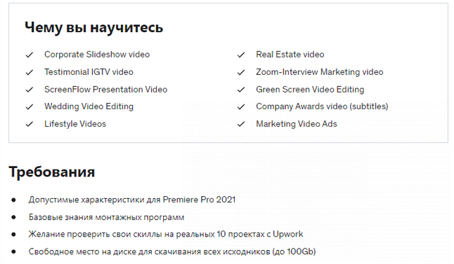 Лекции основаны на проектах от зарубежных клиентов по монтажу видеоwww.udemy.com