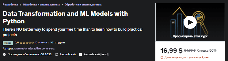 [Udemy] Преобразование данных и модели ML с помощью Python (2022)