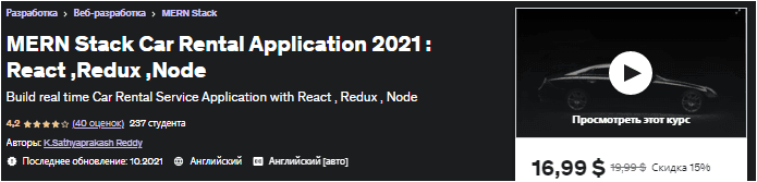 [Udemy] Приложение для Аренды Автомобилей со стеком MERN: React, Redux, Node (2021)