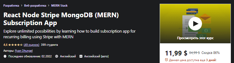 [Udemy] Приложение с подпиской React Node Stripe MongoDB (MERN) (2022)