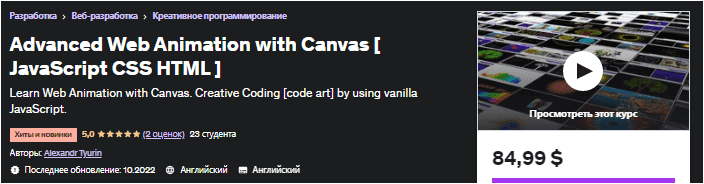 [Udemy] Продвинутая веб-анимация с Canvas [JavaScript CSS HTML] (2022)