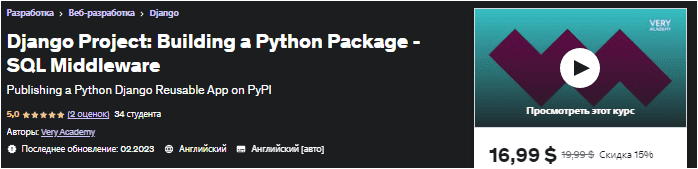 [Udemy] Проект Django: создание пакета Python — ПО промежуточного слоя SQL (2023)