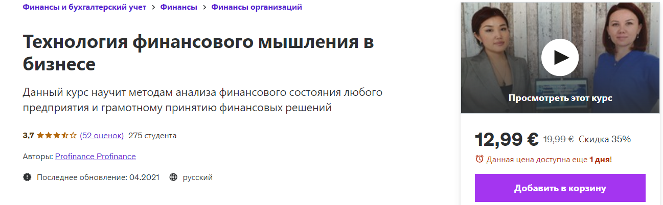 Данный курс научит методам анализа финансового состояния любого предприятия и грамотному принятию финансовых решений