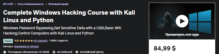 [Udemy] Пройдите курс взлома Windows с использованием Kali и Python (2023)