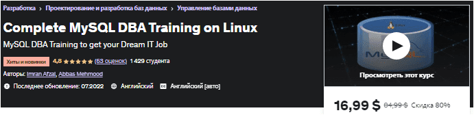 [Udemy] Пройти курс обучения администраторов баз данных MySQL в Linux (2022)