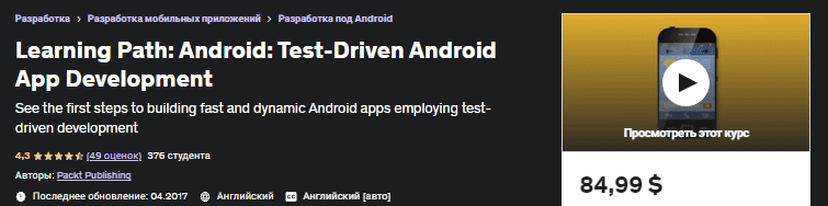 [Udemy] Путь обучения: Android: Разработка приложений для Android на основе тестирования (2017)