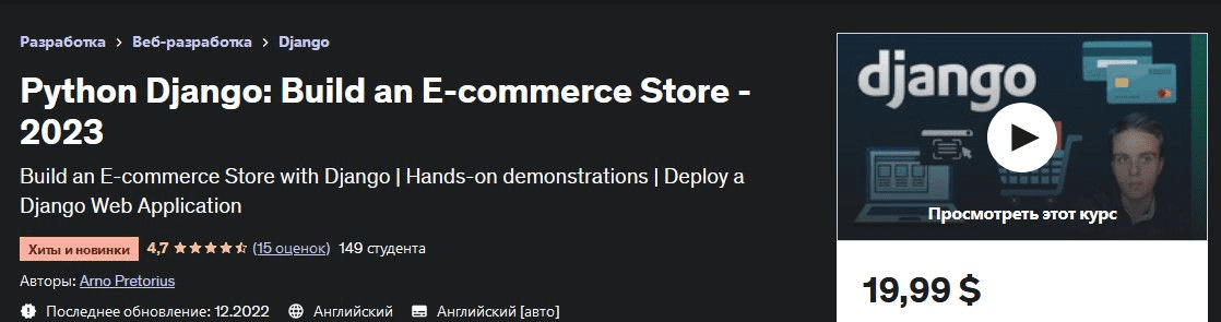 [Udemy] Python Django: Build an E-commerce Store, ultimate web security, payment integration (2023)