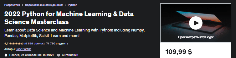 [Udemy] Python для машинного обучения и науки о данных (2021)