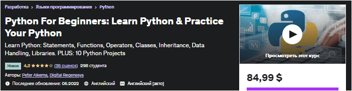 [Udemy] Python для начинающих: изучайте Python и практикуйте Python (2022)