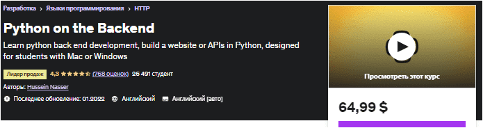 Хотите ли вы улучшить свои знания в Python? Как насчет написания веб-сайта на Python или API, который ваши коллеги-разработчики могут использовать в формате JSON через простой HTTP? С появлением микросервисов и API разработчики, которые привыкли работать с Python, могут перенести свои знания на бэкэнд. В этом курсе вы узнаете основы веб-серверов, настройки веб-сервера Python и написания интересных и крутых приложений на бэкэнд. К концу курса вы будете готовы создавать свои собственные сервисы и API, читать и записывать данные в базы данных, выполнять сложное балансирование нагрузки на ваших Python-сервисах, работать с блокнотами Jupyter и многим другим!
