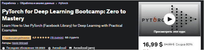 [Udemy] PyTorch для глубокого обучения Bootcamp: от нуля до мастерства (2023)