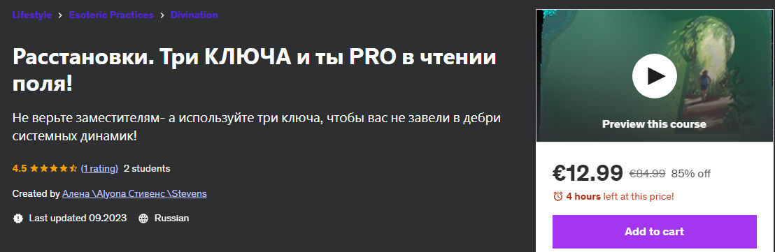 Для кого этот курс:- Незаменимый навык хорошего расстановщика- ПРАВИЛЬНОЕ чтение поля, а не надежда на то, что скажут заместители! Зачем тратить свое время, когда можно пойти и получить практический опыт с первых рук?! Базовая технология самого ДОСТОВЕРНОГО чтения энергий поля человека (ДОСТУПНАЯ КАЖДОМУ), которая ведет к уверенности и успешной практике расстановщика!