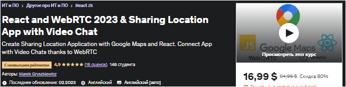 [Udemy] React и WebRTC 2023 и приложение для обмена местоположением с видеочатом (2023)