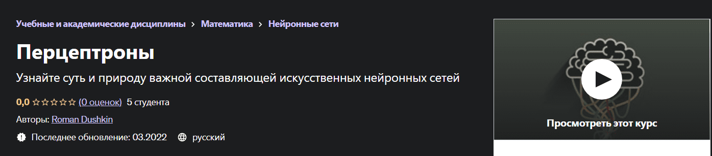 [Udemy] [Roman Dushkin] Перцептроны (2022)
