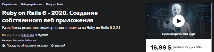 [Udemy] Ruby on Rails 6 - 2020. Создание собственного веб приложения (2020)