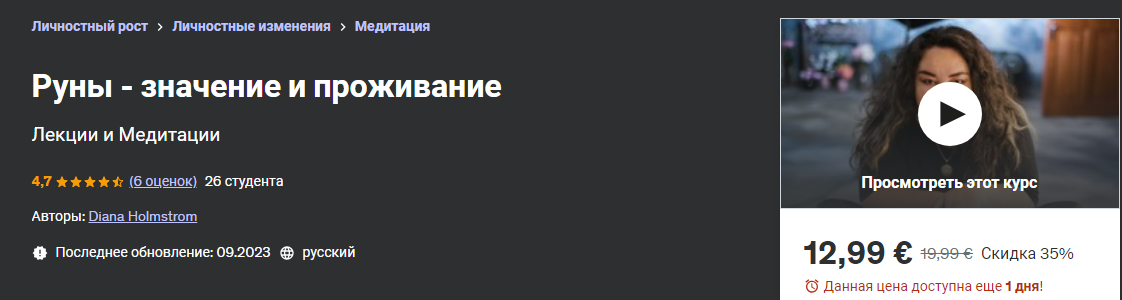 Утром или вечером на кануне, так что бы у вас был целый день для проживания руны, вы слушаете лекцию и входите в медитацию, медитации выполнены в технике направленного воображения. Мы слышите голос проводника, который введет вас в поток конкретной руны. Проводник я, Диана Холмстрем